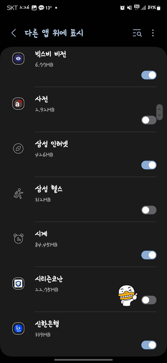 현재 화면이 메인 화면이며, "검사하기" 버튼을 누르면 악성 앱이 있는지 검사를 진행한다. 검사 후 만약 악성 앱이 발견이 된다면 바로 삭제가 가능하고, 하단의 "출처를 알 수 없는 앱"에서는 내가 의도하지 않은 앱들이 설치되어있는 것을 알려주니, 참고하면 되겠다.