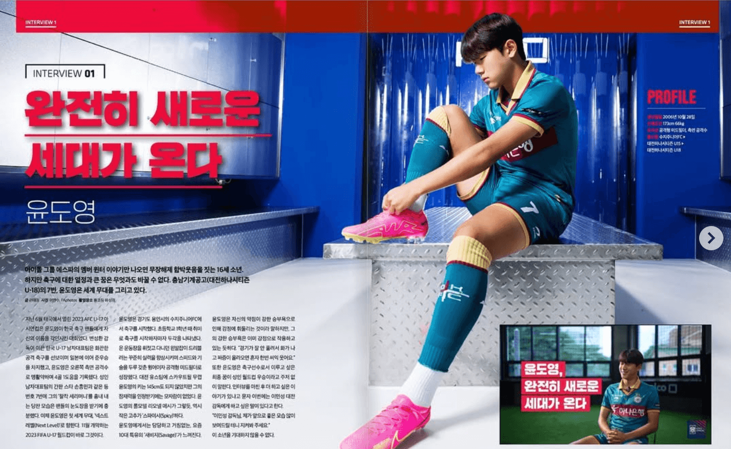 2019년 대전 15세 이하(U-15)에 입단해 2021년 U-15 대회 3관왕 달성의 핵심 주역으로 이름을 알렸다.